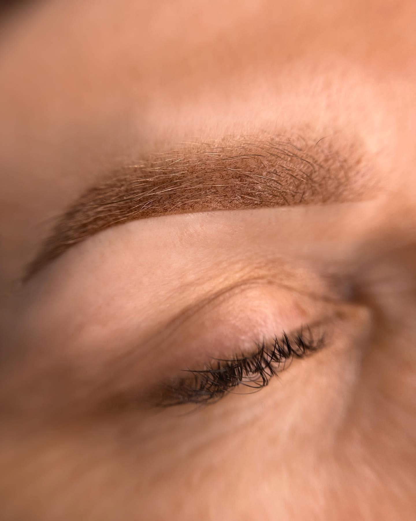 Poprawa estetyki wyglądu brwi po innej linergistce.