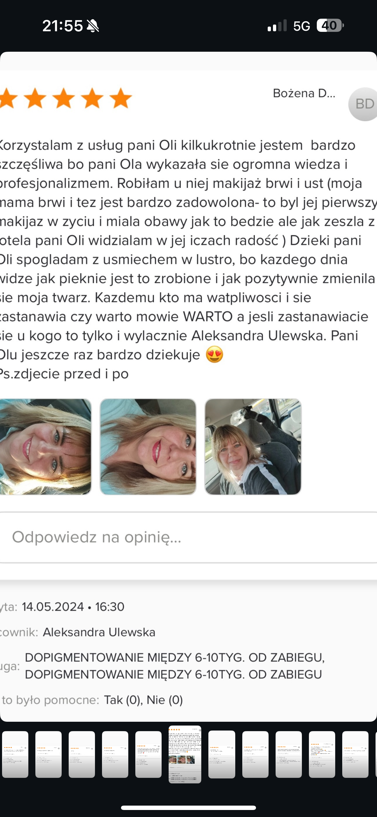 Jestem linergistką i szkoleniowcem z doświadczeniem, które pozwala mi zrozumieć zarówno potrzeby moich klientek, jak i oczekiwania moich kursantek. Moje szkolenia obejmują zarówno podstawy, jak i zaawansowane techniki pigmentacji brwi. Każdą osobę traktuję indywidualnie, bo wiem, jak ważne jest dostosowanie efektu do unikalnych cech klientki, a także jak istotne jest profesjonalne podejście w nauce zawodu.